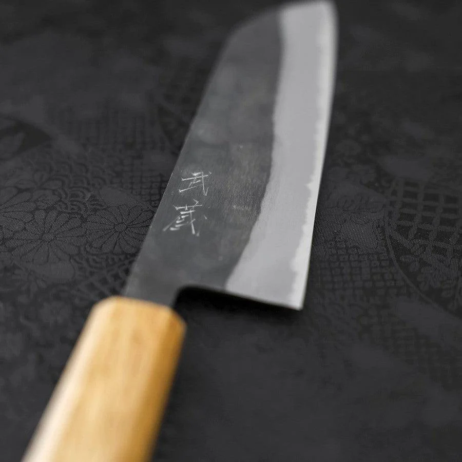 Santoku Blue Steel #2 Kurouchi Eichenholz Griff 165mm