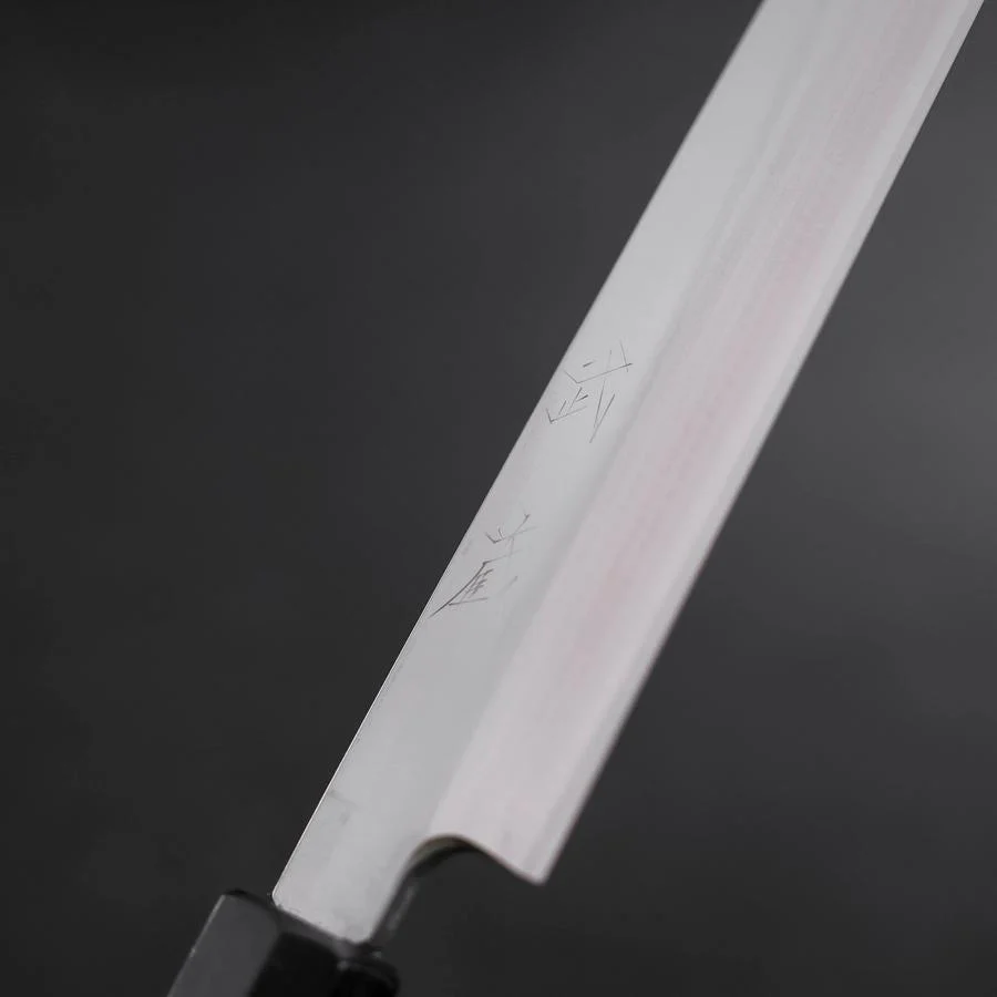Das Yanagiba-Messer ist ein langes, schlankes Küchenmesser, das sich durch seine einseitig geschliffene Klinge auszeichnet. Es wird hauptsächlich für das Schneiden von rohem Fisch und Meeresfrüchten verwendet, um feine, gleichmäßige Scheiben zu erzeugen. Die Klinge, die typischerweise zwischen 240 mm und 330 mm lang ist, besteht aus hochwertigem Stahl und bietet außergewöhnliche Schärfe und Präzision. Der ergonomische Griff aus Holz, oft aus Magnolie oder anderen hochwertigen Hölzern gefertigt, liegt gut in der Hand und ermöglicht eine exakte Kontrolle beim Schneiden. Das Yanagiba-Messer ist ein unverzichtbares Werkzeug für Sushi-Köche und alle, die Wert auf perfekte, kunstvolle Schnitte legen.